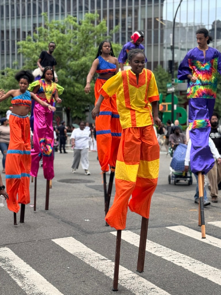 On the day of the photo below, I was looking out for neon yellow and happened to see these construction workers taking selfies while watching a parade.